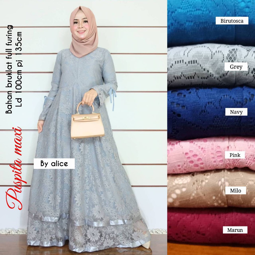 Jual Maxi Lakshana Dress Gamis Brokat Fashion Wanita Muslimah Di