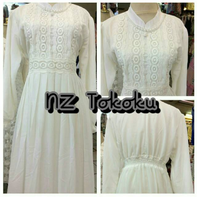 Baju Gamis Putih Muslim Brokat Untuk Lebaran Umroh Pesta Dll