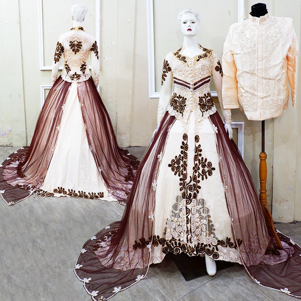 Bisa Dibeli Terpisah Gaun Pengantin Cream Coklat Elegan Mewah
