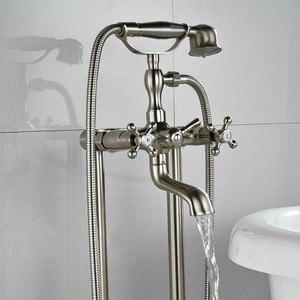 Freestanding Floor Mounted Bathtub Swivel Spout Faucet 2 Knobs