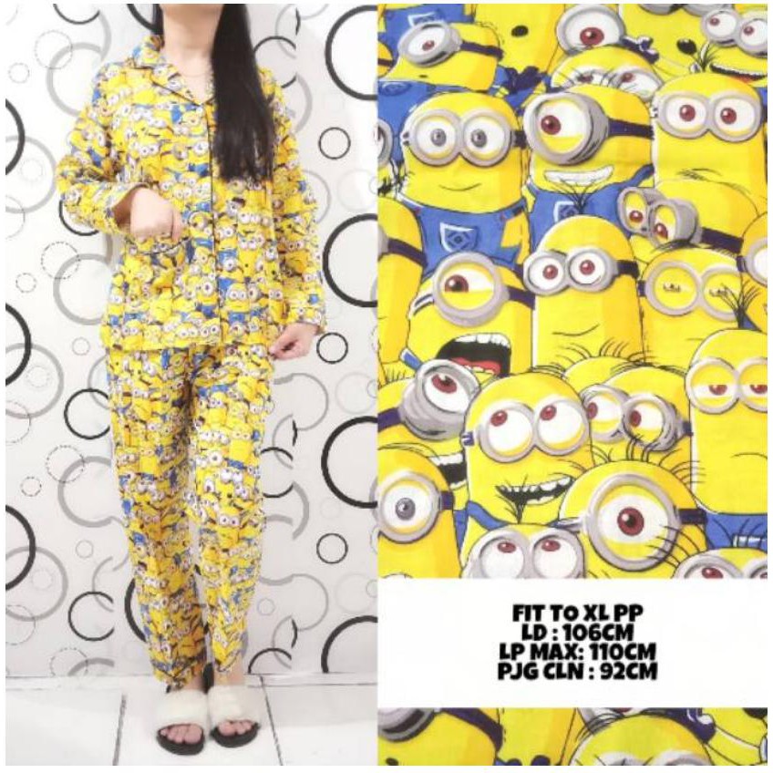 Jual Piyama Jumbo Wanita Minions Pp Lengan Panjang Baju Tidur