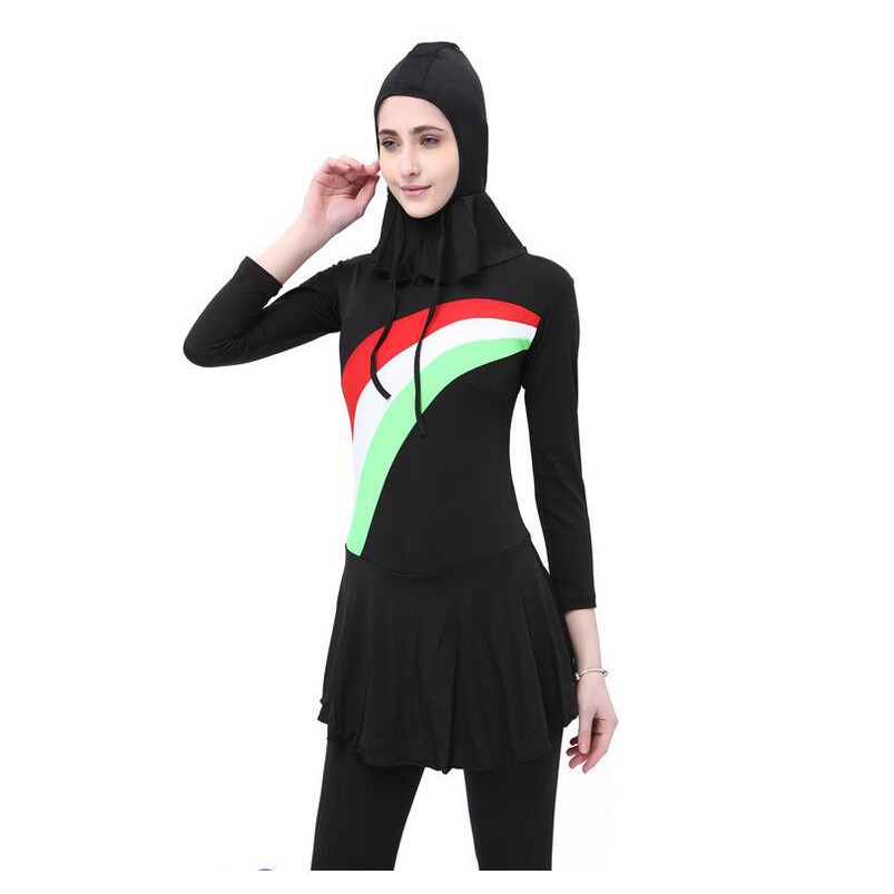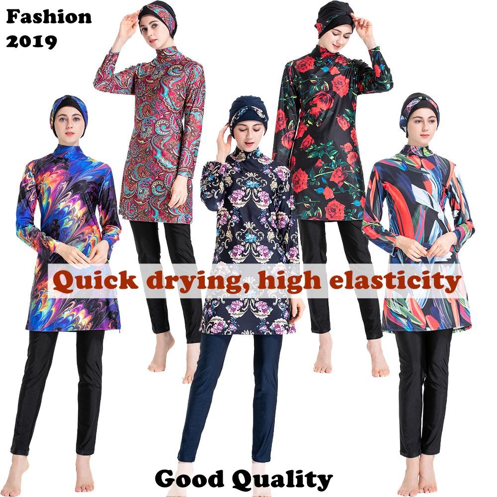 2020 Women Muslim Bathing Suit With Cap Conservative Multicolor