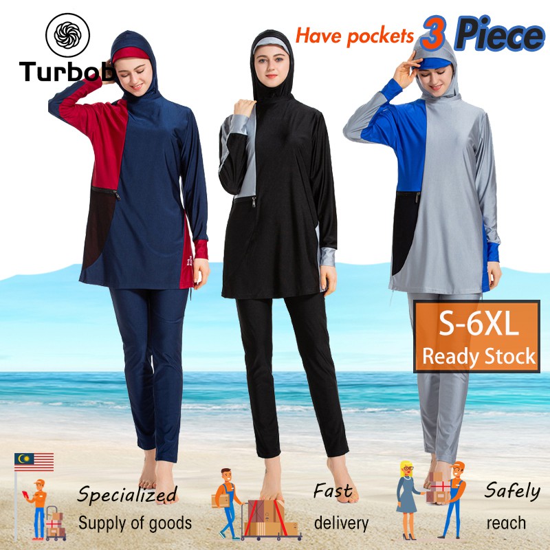 Muslimah Swimming Suits Baju Renang Muslim High Elastic Three