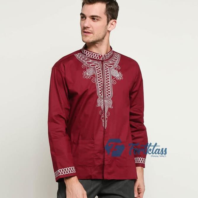 Jual Baju Koko Pria Katun Bordir Minimalis Baju Muslim Cowok Keren