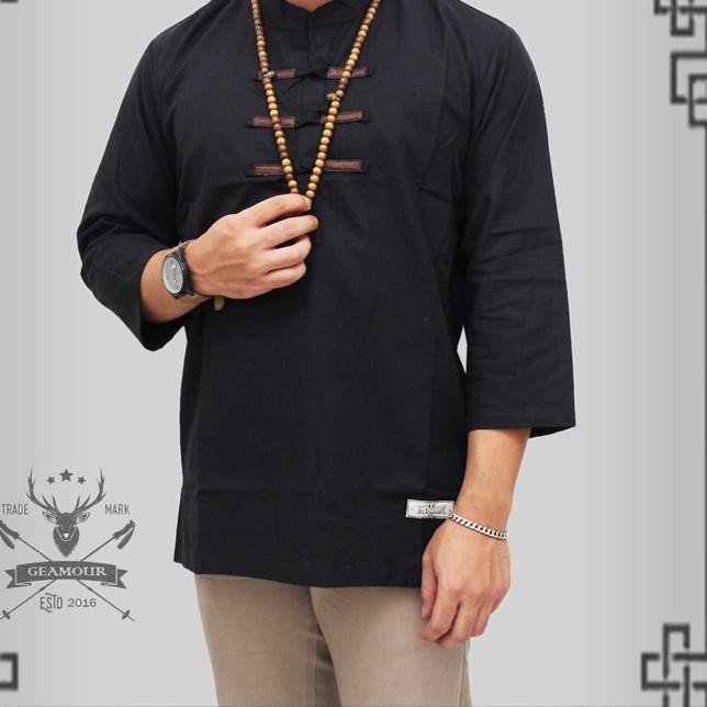 Terlaris Baju Koko Pria Model Kancing Cina Warna Hitam Baju
