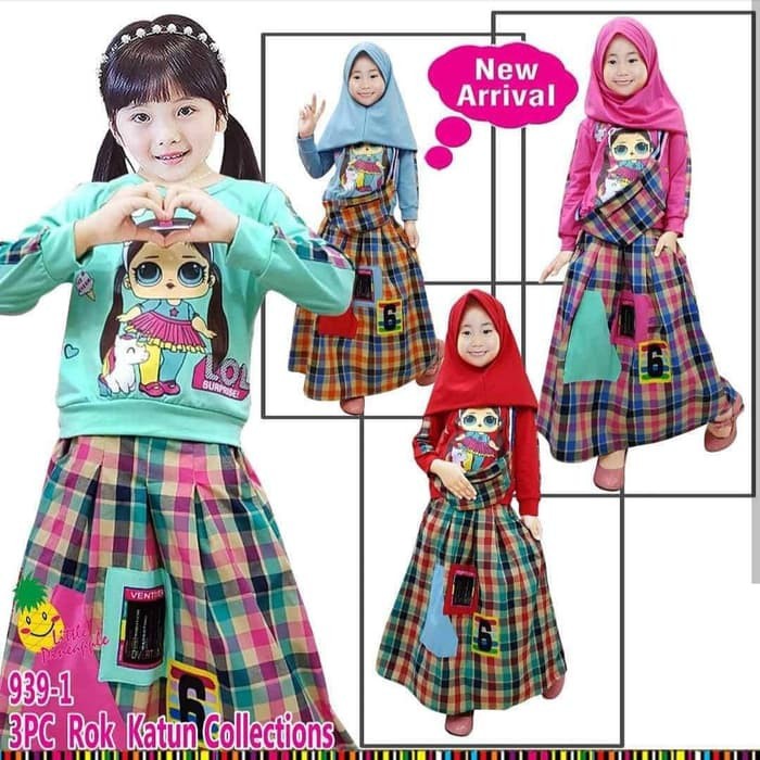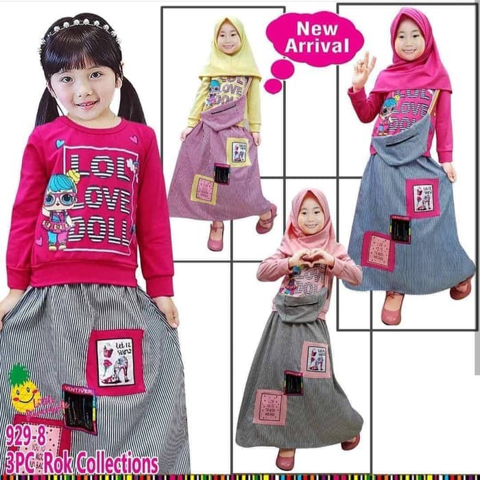 Baju Muslim Anak Perempuan Little Pineapple Lol Led Rok Jeans