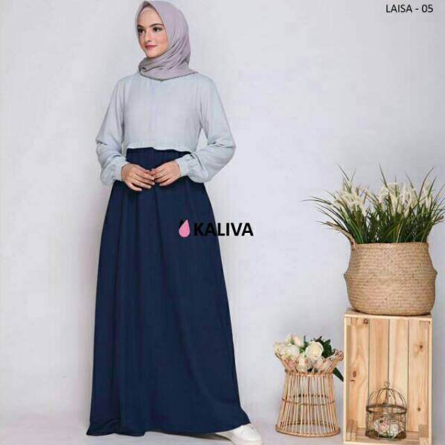 Gamis Syari Cantik Kaliva Laisa Busui Polos Kombinasi Baju Muslim