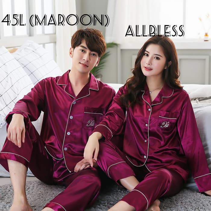 Adastock Couple Piyama Pijamas Lengan Panjang Satin Silk Baju