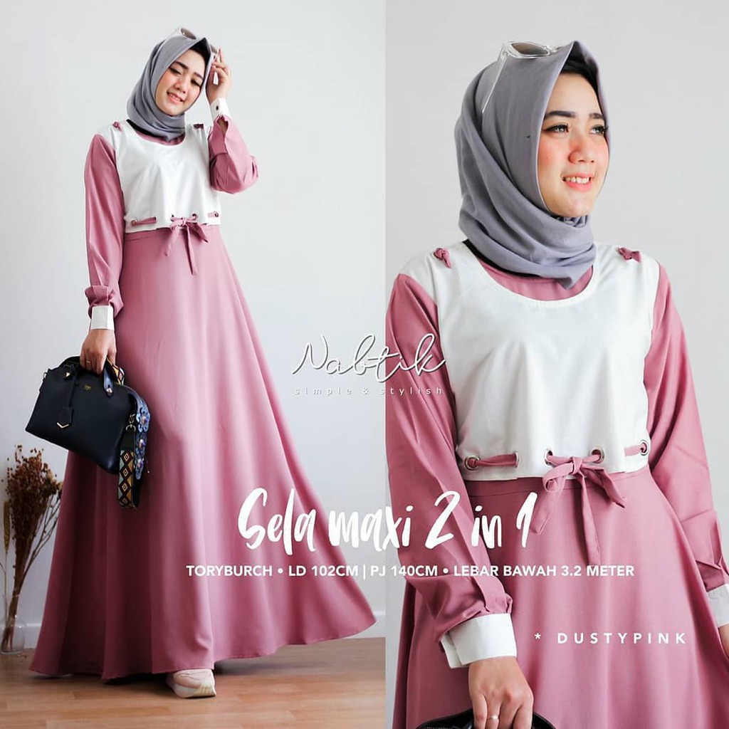 Sela Maxi Dress Syari 2 In 1 Baju Gamis Wanita Muslim Kekinian
