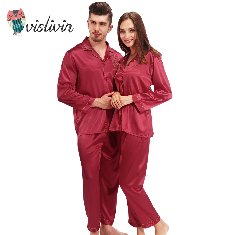 Vislivin Piyama Sutra Lengan Panjang Warna Polos Satin Piyama Pria
