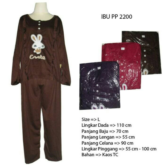 Piyama Baju Tidur Ukuran L Lengan Panjang Bunny Polos Shopee