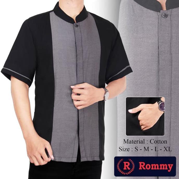 Kemeja Baju Koko Muslim Pria Rommy Hitam Putih Kombinasi