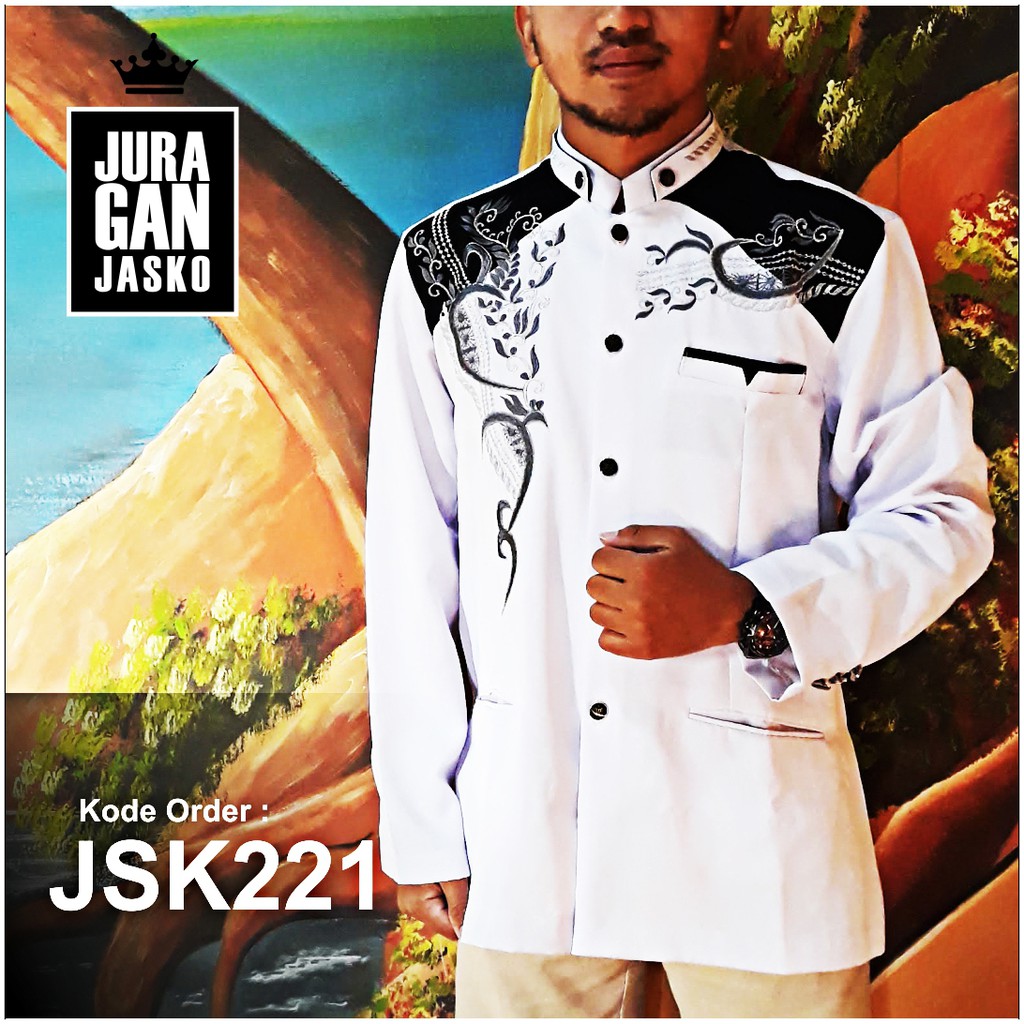 Jasco Baju Koko Jasko Modern Putih Kombinasi Hitam Busana Muslim