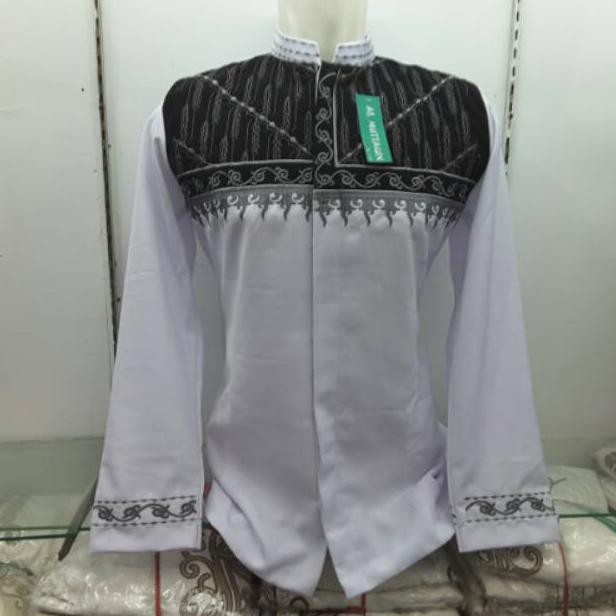 Baju Koko Putih Motif Kombinasi Hitam Kemeja Muslim Pria