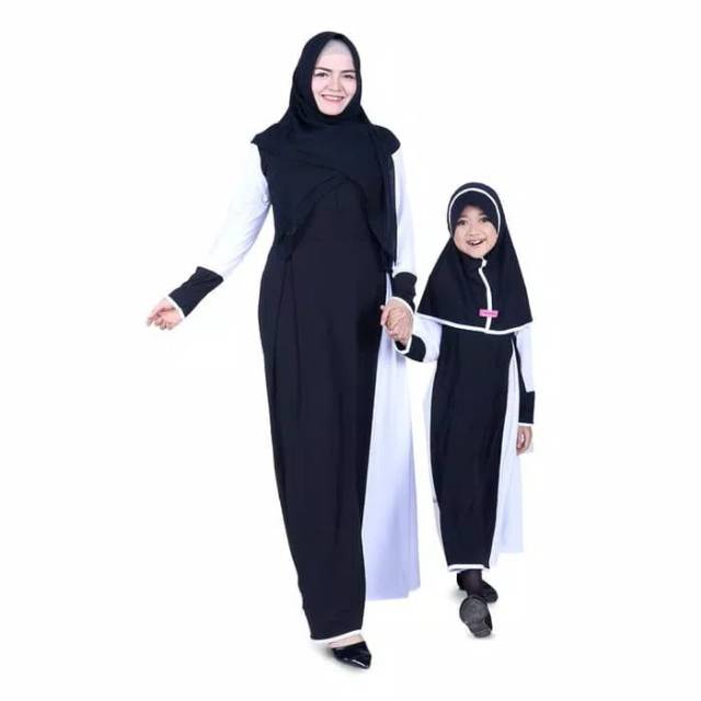 Baju Muslim Couple Ibu Dan Anak Jersey Kombinasi Hitam Putih