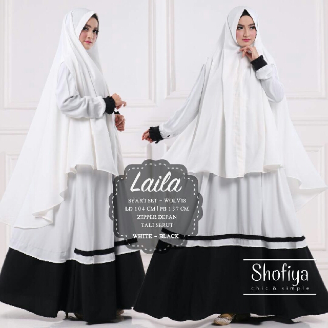 Laila Syar I Set Kombinasi Warna Hitam Putih Olshop Fashion