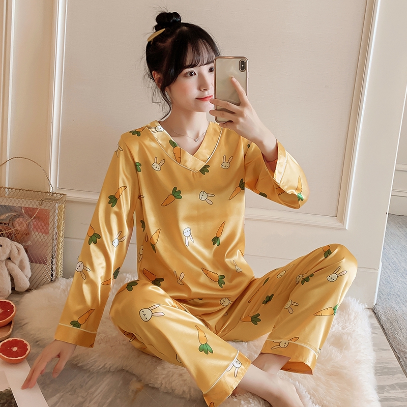 Jual Piyama Baju Tidur Wanita Lengan Panjang Celana Panjang Silk