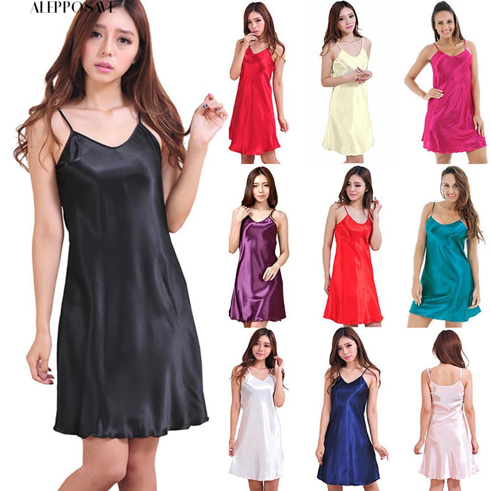 Sexy Baju Tidur Sutra Pakaian Tidur Wanita Malam Gaun Tanpa Lengan