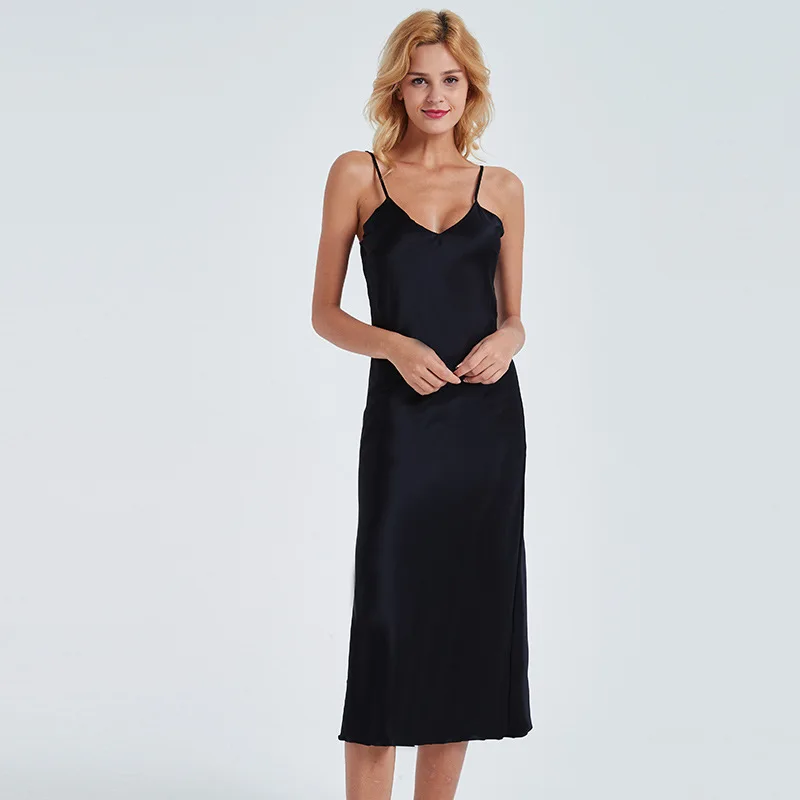 Hitam Merah Muda Champagne Satin Sutra Murni Slip Wanita Baju