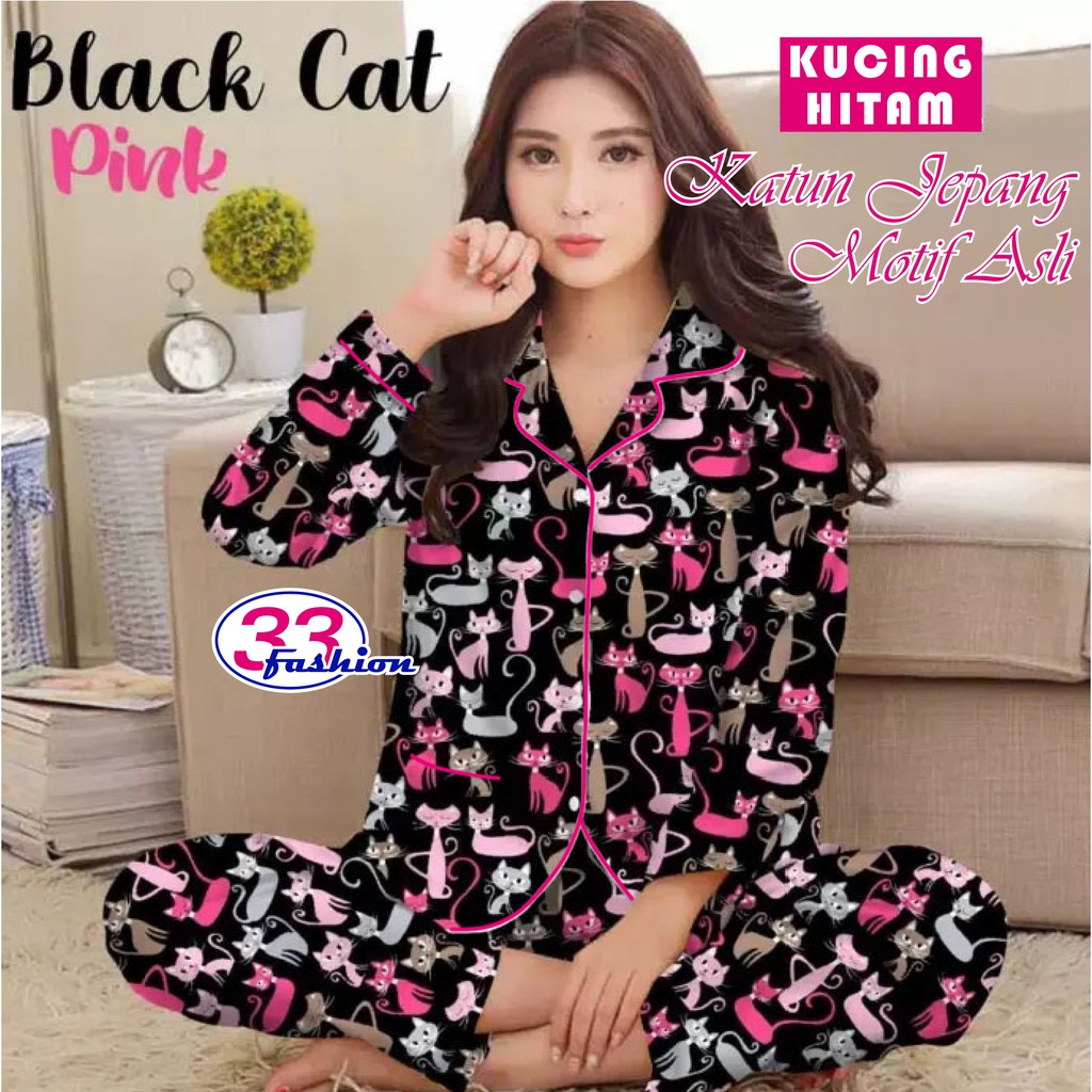 Baju Tidur Wanita Piyama Kucing Hitam Olshop Fashion Olshop