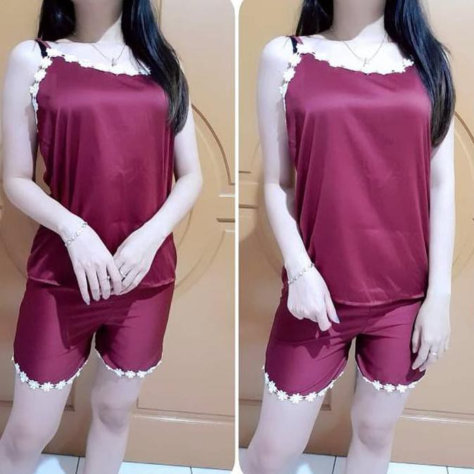 Bgt8d9 Piyama Pendek Set 007 Baju Tidur Wanita Bajutidur Satin