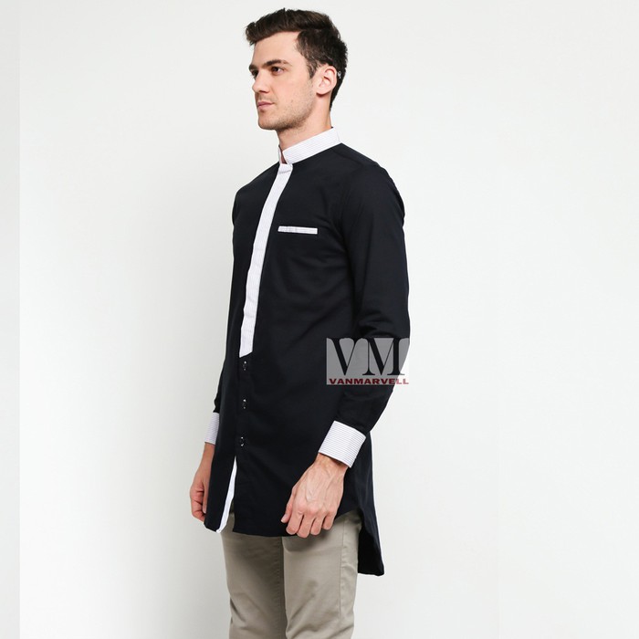 Baju Muslim Pria Lengan Panjang Hitam Putih Navy Maroon Baju