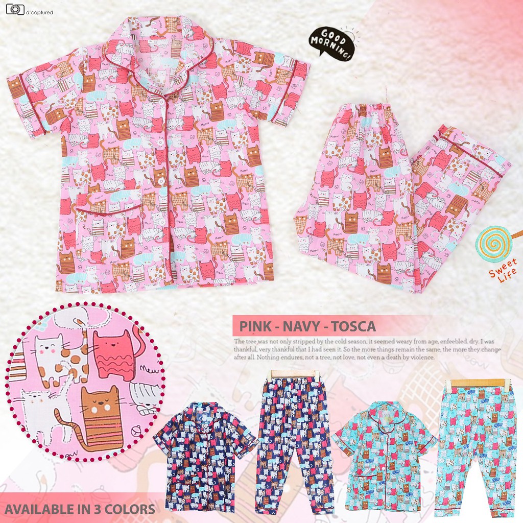 Stelan Baju Tidur Anak Pp Gambar Kucing 1203 Uk S M L Xl Shopee
