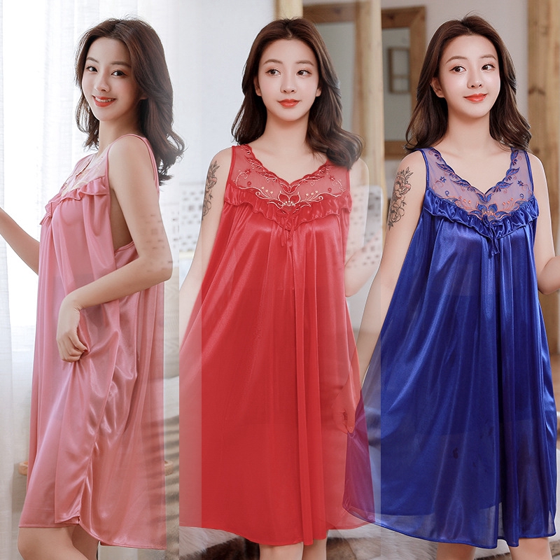 Wanita Seksi Es Sutra Pakaian Tidur Bernapas Tanpa Lengan Warna