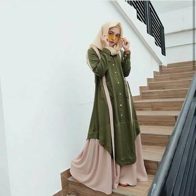 Intip Yuk Paduan Gamis Syari Hijau Army By Aulia Fashion March