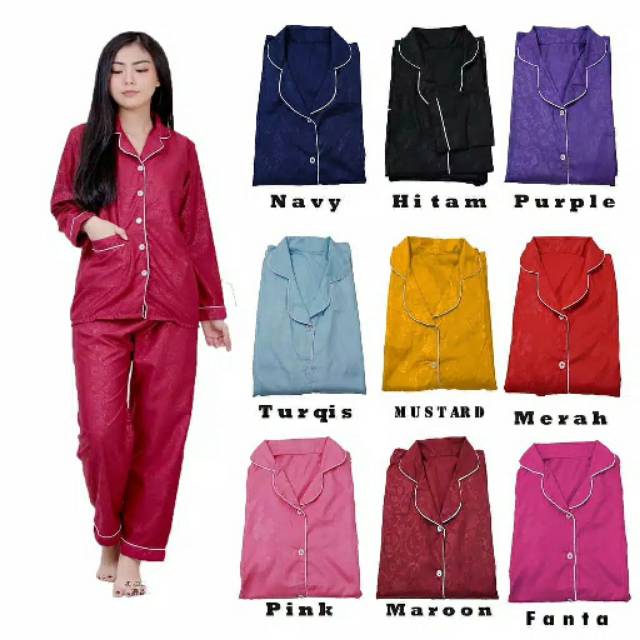 Baju Tidur Piyama Pajamas Satin Embos Fit To Xl Lazada Indonesia