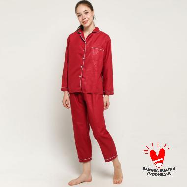 Jual Baju Tidur Wanita Dewasa Polos Bahan Embos Pajamas Merah
