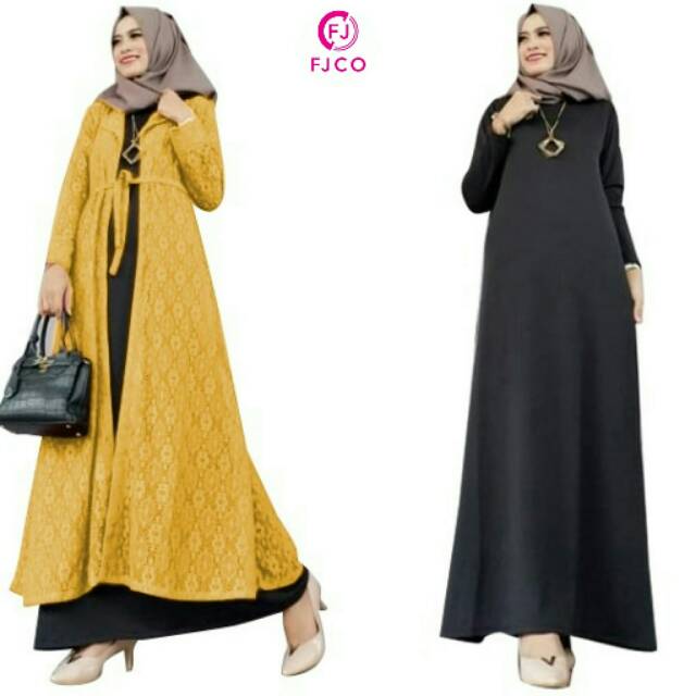 2in1 Maxi Dan Outer Brukat Dress Brokat Gamis Staylist Maxi