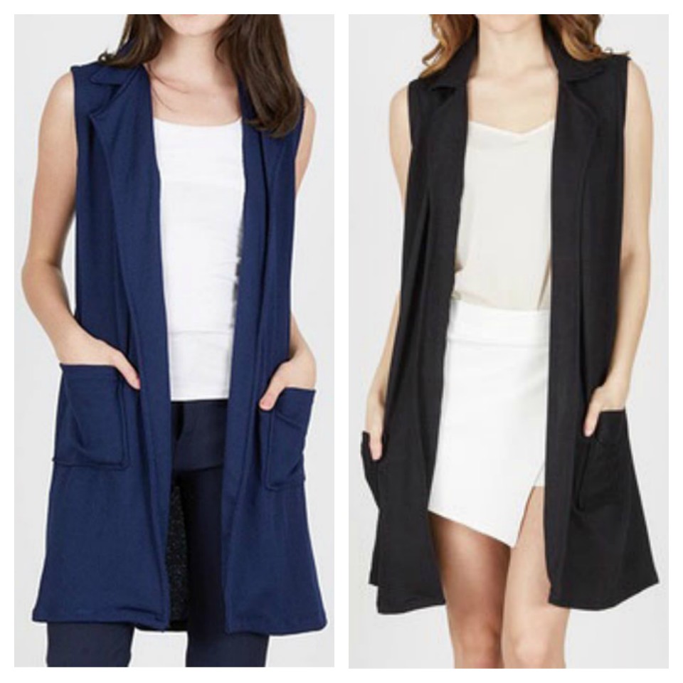 Long Cardigan Vest Kardigan Panjang Pocket Blazer Outer Baju