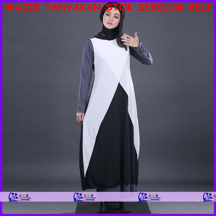 Gsfyl 012 Gamis Baju Muslim Tunik Putih Hitam Outer Tunik