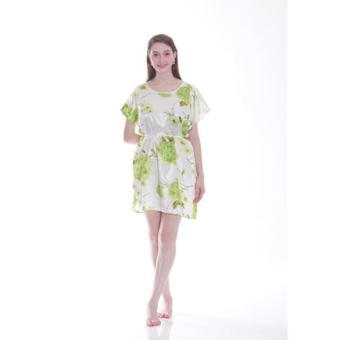 Cynthia Baju Tidur Satin Motif Bunga Angrek Green Hijau Muda