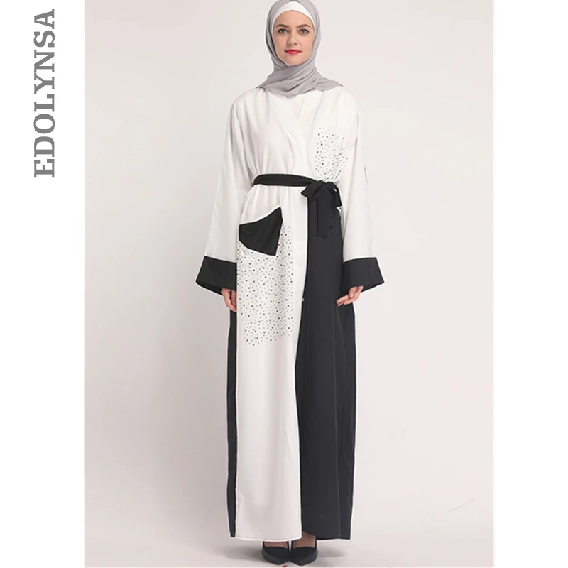 2020 Hitam Putih Patchwork Pakaian Sederhana Maroko Kaftan Dubai