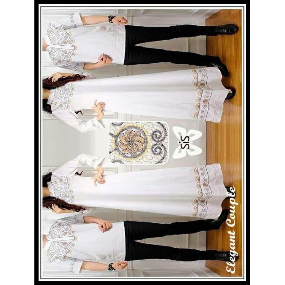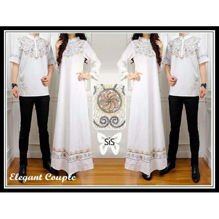 Elegan Couple Busana Lebaran Muslim Gamis Putih Wanita Dan Kemeja