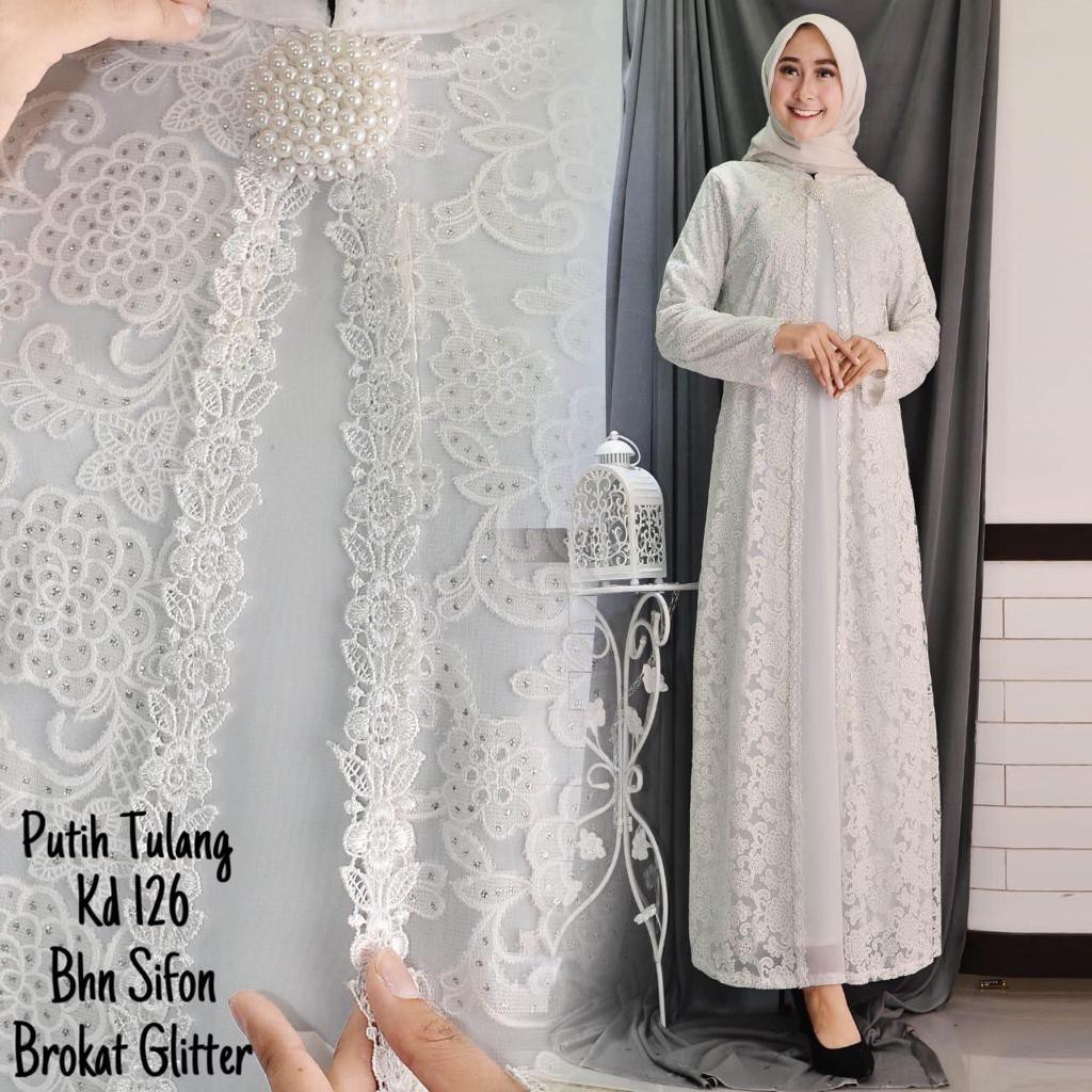 Jual Dress Gamis Brukat Wolfis Putih Muslimore