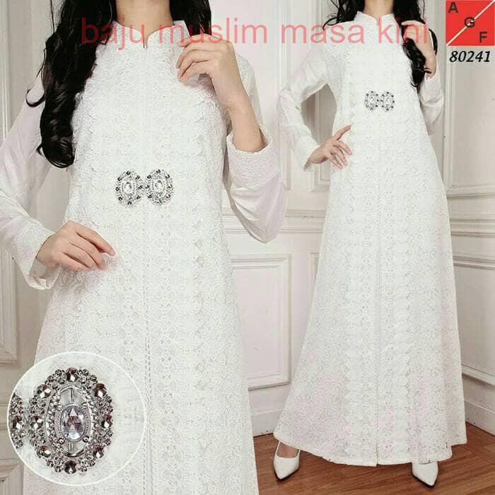 Gamis Brokat Putih Modern Terbaru Model Gamis Terbaru