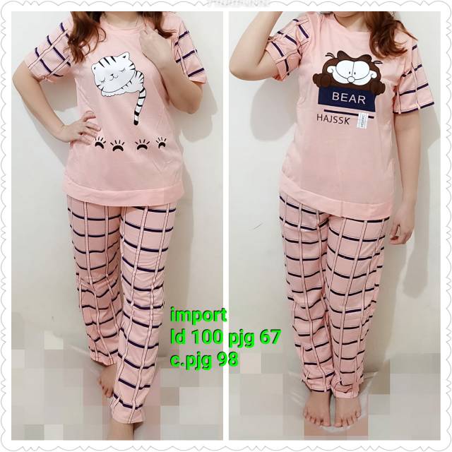 Baju Tidur Jumbo Lengan Pendek Celana Panjang Murah 0638 Hanya