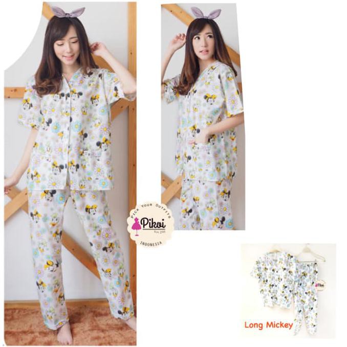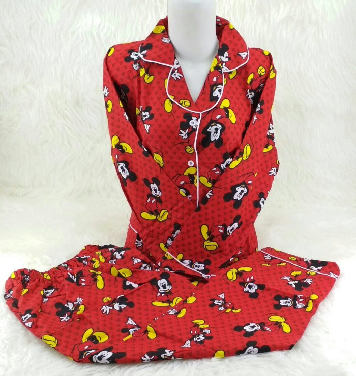 Jual Piyama Wanita Dewasa Pp Lengan Panjang Motif Mickey Mouse
