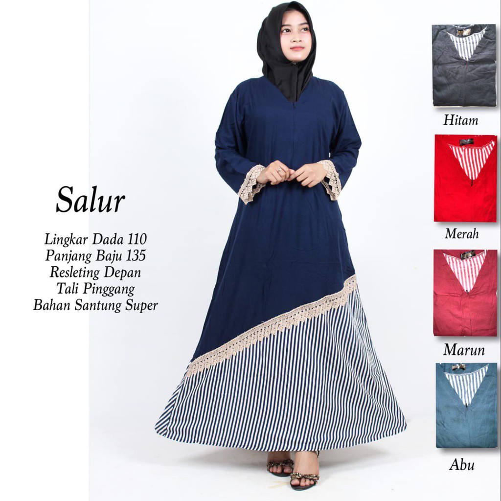 Gamis Salur Cantik Tali Pinggang Kancing Wanita Dewasa Baju