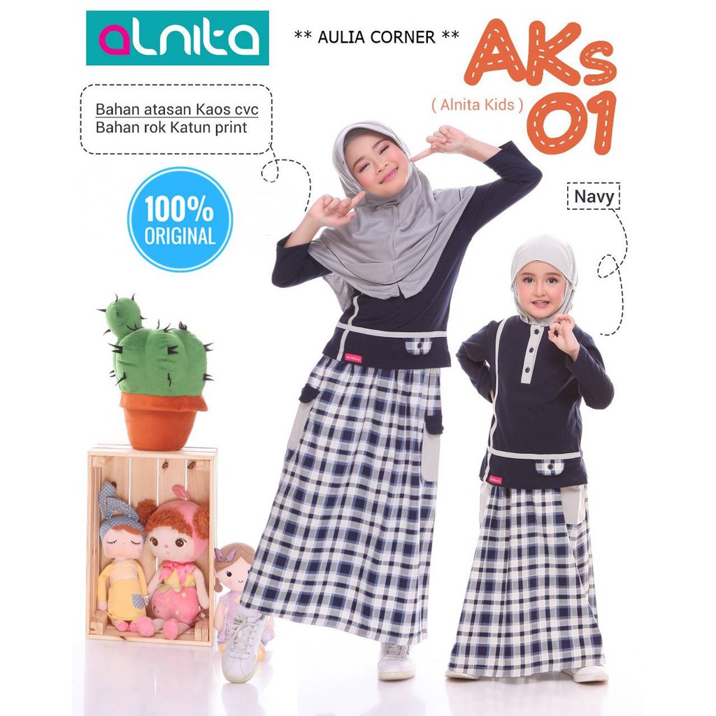 Busana Muslim Wanita Gamis Anak Terbaru Alnita Aks 01 Navy
