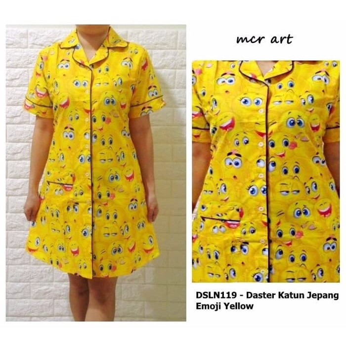 Daster Baju Tidur Dress Katun Jepang Emoji Yellow Shopee