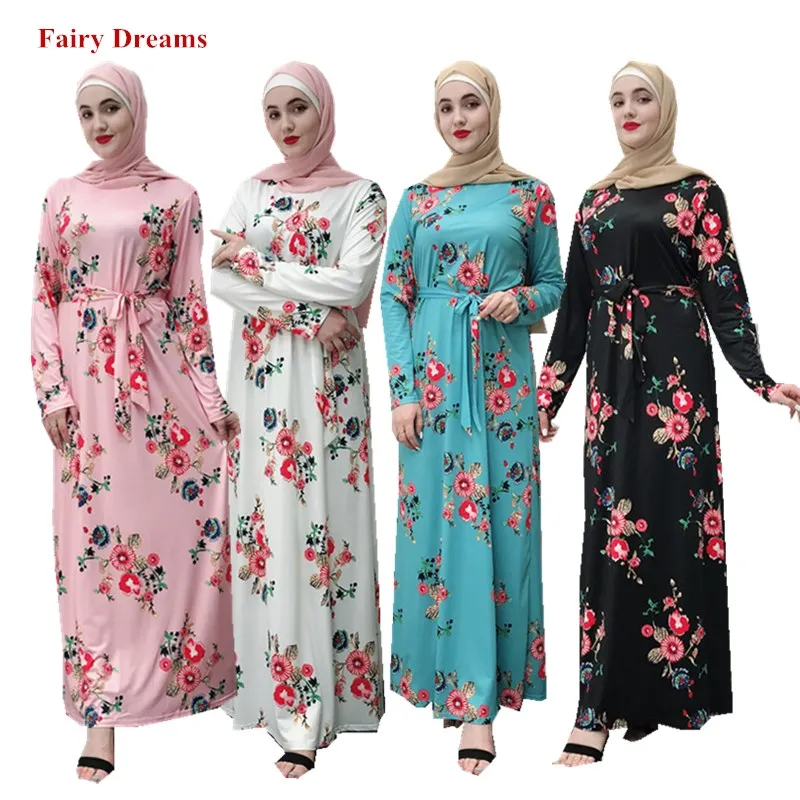 Wanita Abaya Dubai Pakaian Hitam Merah Putih Biru Kasual Maxi Baju