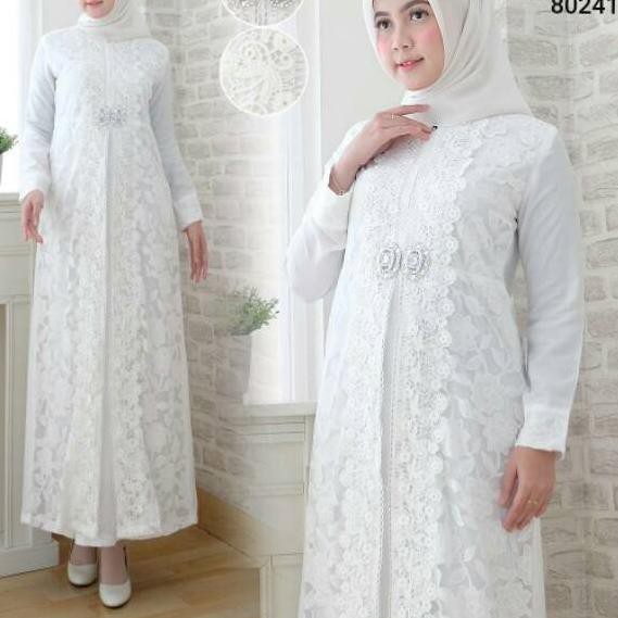 Sale Baju Gamis Wanita Brukat Gamis Putih Lebaran Umroh Haji
