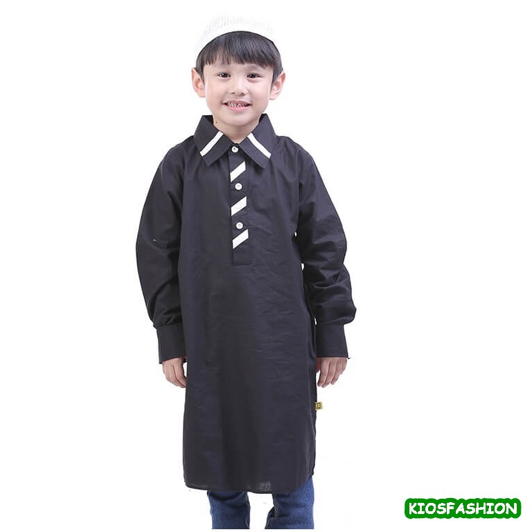 Jual Gamis Koko Anak Laki Cowok Strip Murah Hitam Putih Bajuyuli