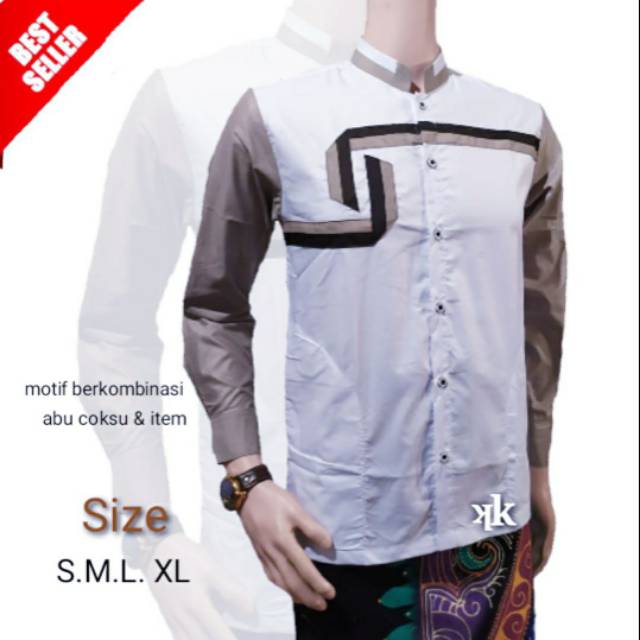 Baju Koko Pria Abu Abu Kombinsi Kemeja Muslim Keren Dan Berwibawa