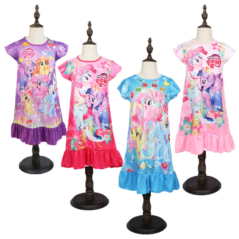Gadis Gaun Lengan Pendek Kartun My Little Pony Pattern Home Baju