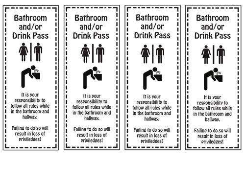 Bathroom Drink Passes 4 Passes Per Sheet Teaching Resources
